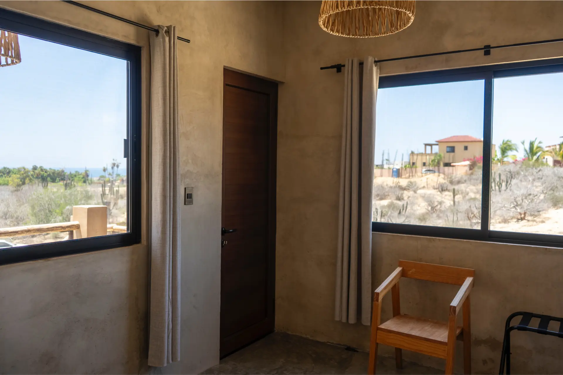 Step into serenity with our Ocean view apartment at Baja Temple. The room offers a peaceful oasis overlooking our beautiful desert garden. Wake up to sounds of nature right on your private terrace, or watch the stars at night.